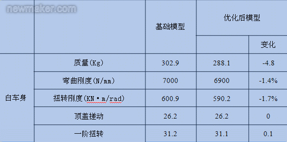 减重后材料各工况的最大应力均在目标值以内,符合要求,减重后车身强度变化不大,如下表3所示: 表3 优化后各个工况下最大应力值 本文采用OptiStruct软件对某车身料厚进行尺寸优化设计,通过灵敏度快速探测出最佳优化零部件,再根据尺寸料厚优化对结果解析,经过多学科的验证分析得到了满足目标要求的一组优化厚度信息。在产品开发前期,在保证性能基础上质量减重4.8Kg,成本控制方面得到了良好的体现。 |