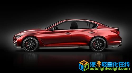 英菲尼迪近日发布了Q50高性能版车型Q50 Eau Rouge。该车将于今年北美车展发布。 与F1红牛车队共同设计,英菲尼迪Q50 Eau Rouge的前定风翼、后扩散器、侧裙、后视镜盖以及后扰流板均采用碳纤维打造。另外还采用了21英寸轻量化轮毂。