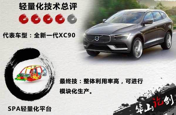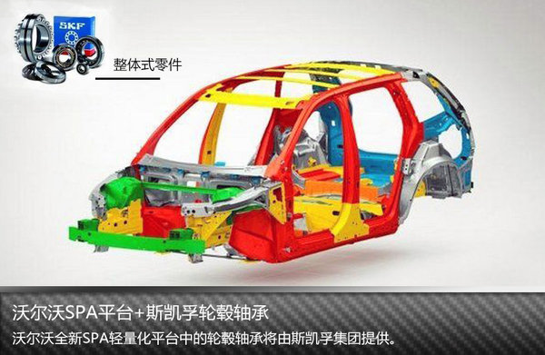 相比德系三强而言,沃尔沃的轻量化主要注重在细节上,其SPA平台将采用来自斯凯孚集团提供的轻量化轮毂轴承,与SPA平台的轻量化想匹配后,使得未来沃尔沃的新车重量将减少150公斤左右。针对于轻量化技术方面的研究,沃尔沃汽车集团董事长李书福表示:“经过与董事会商讨,与沃尔沃高层达成一致,将保持沃尔沃的全球一致质量体系,而轻量化将是产品开发趋势。”沃尔沃的SPA平台在材料上采用了高强度钢与铝合金,使得车身安全性得到提升的同时重量也随之减轻,而斯凯孚的HBU3轮毂轴承单元是将轮毂轴与安装制动盘或轮毂的凸缘融合在了一起形成一个整体式零件,通过零部件的缩减使得重量进一步降低。未来沃尔沃SPA平台的首款车型将为全新一代XC90,新平台的零部件共通化也合理的削减了不少新车的研发成本。