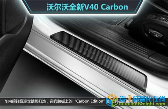 全新沃尔沃V40 Carbon掀背版基于V40 R-Design打造,黑色车顶以及后视镜镜帽均采用了碳纤维打造,加上19英寸铝合金轮毂,车重大大减轻,黑色尾排设计突出其神秘的运动感。
