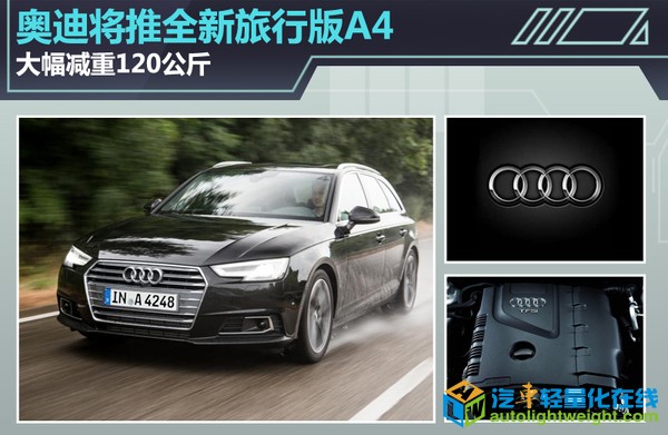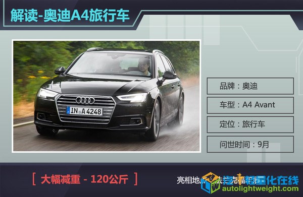 德国作为汽车工业最为发达的国家之一,其豪华车品牌已在全球享有较高的声誉,其中奥迪则是这一行列中最具代表性的品牌之一,而其麾下的A4车型则是多款豪华轿车中的典范之作。日前,网通社从英国媒体AutoCar获悉,奥迪将推出全新A4 Avant车型,这款定位于旅行车的全新豪华轿车已采用了轻量化的造车理念,得益于铝合金材质的广泛应用,新车的整备质量将大幅降低120公斤。