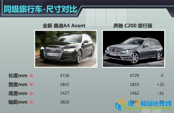 由于奔驰C200旅行车与奥迪A4 Avant属于定位相同的车款,因此两车将处于直接竞争关系。在两车的对比中,虽然全新奥迪A4 Avant在车身尺寸方面不及奔驰C200旅行车,但相比于多年未经历换代的现款C200而言,全新问世的奥迪A4 Avant将具有较强的优势,以便占据该细分市场的较大份额。 |