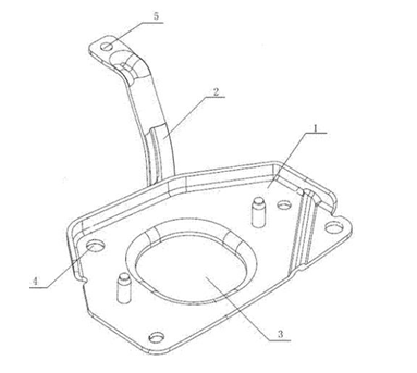 【主权项】: 一种轻量化冲压焊接式汽车发动机悬置支架,其特征在于:包括一扁平状支架本体(1)和采用冲压焊接连接所述架本体(1)侧边的辅助支架(2),所述支架本体(1)上开设有能将发动机悬置在支架本体(1)上的开孔(3),所述辅助支架(2)分为上段、弯曲部和下段,所述上段和所述下段通过弯曲部连接,其弯曲角度在90°~135°之间。 【法律状态】:
