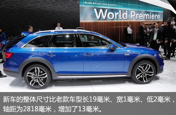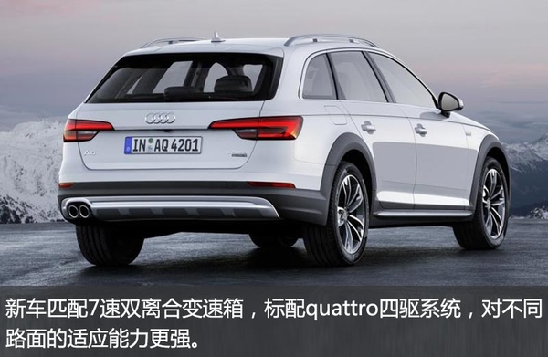 奥迪在去年对旗下的主力畅销车型A4进行了更新换代,新车以全新的面貌出现在市场中,收获了不错的反响。网通社独家战略合作英国媒体Autocar报道,在今年的北美国际车展上,奥迪正式发布了全新一代A4 Allroad,新车尺寸、轴距和离地间隙都有所增加,标配四驱系统,将在今年三季度正式上市。![]() ![]() 奥迪全新A4 Allroad将在老款车型的基础上对车辆外观进行升级。新车采用了全新19英寸铝合金轮毂,离地间隙增加了34毫米,通过性有所提升。新车的整体尺寸为4750*1842*1493毫米,比老款车型长19毫米、宽1毫米、低2毫米,轴距为2818毫米,增加了13毫米。虽然车身尺寸有所增加,但新车的车重下降了90公斤,达到了1580公斤。 ![]() 动力方面,奥迪全新A4 allroad将搭载多款动力输出各不相同的发动机配置,包括排量为2.0升的汽油和柴油发动机,以及排量为3.0升的柴油发动机。新车全系匹配7速双离合变速箱,标配quattro四驱系统,对不同路面的适应能力更强。 |