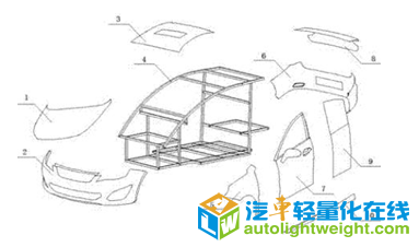 更多著录项目 【摘要】: 本实用新型涉及电动汽车,特别是一种轻量化电动汽车。它包括镁合金及高强碳纤维的全承载式车身骨架和连接并覆盖在车身骨架上的车身覆盖件;该车身覆盖件包括机盖、前保险杠、顶盖、左右前翼子板、后保险杠、左右门板、后背门、左右后侧围、左右裙边;其特征在于:该车身覆盖件采用两层T200A规格的高强度编制碳纤维布夹一层高强度碳纤维布。它主要解决现有电动汽车整车整备质量远远没有达到轻量化电动汽车所能达到的减重效果等技术问题,它不但可以达到轻量化的目的,而且可以减少焊装设备成本的投入。 【附图】: 【主权项】: 一种轻量化电动汽车,它包括镁合金及高强碳纤维的全承载式车身骨架(4)和连接并覆盖在车身骨架(4)上的车身覆盖件;该车身覆盖件包括机盖(1)、前保险杠(2)、顶盖(3)、左右前翼子板(5)、后保险杠(6)、左右门板(7)、后背门(8)、左右后侧围(9)、左右裙边(10);其特征在于:该车身覆盖件采用两层T200A规格的高强度编制碳纤维布夹一层高强度碳纤维布。 【法律状态】: