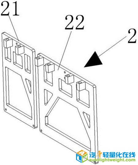 【主权项】: 一种分体式超轻量化汽车后排座椅靠背骨架,其特征在于:是由EPP泡沫(1)和分体式镁合金骨架(2)组成,分体式镁合金骨架(2)包括有窄镁合金骨架(21)和宽镁合金骨架(22),窄镁合金骨架(21)和宽镁合金骨架(22)各自内嵌在EPP泡沫(1)中,窄镁合金骨架(21)和宽镁合金骨架(22)各自和EPP泡沫(1)模压成型结合在一起。 【法律状态】: