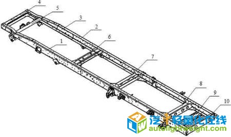 【主权项】: 轻量化的轻型卡车车架总成,包括左纵梁、右纵梁、第一横梁总成、第二横梁总成、第三横梁总成、第四横梁总成、第五横梁总成、备胎横梁和后横梁,第一横梁总成、第二横梁总成、第三横梁总成、第四横梁总成、第五横梁总成、备胎横梁和后横梁的两端均分别连接着左纵梁和右纵梁,在第一横梁和第二横梁之间的左纵梁内和右纵梁内分别设有加固板,其特征在于:所述左纵梁和右纵梁的材料均为高强度钢610L?5?GB/T3273;在第一横梁和第二横梁之间的左纵梁内和右纵梁内分别设有短加固板,短加固板为槽钢状,长度为450~550㎜。 【法律状态】:
