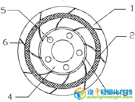 更多著录项目 【摘要】: 本实用新型公开了一种轻量化制动盘,包括制动盘面,摩擦弧,筒体,安装盘体和连接筋;两个所述制动盘面由若干所述连接筋连接为一体,八段相同的所述摩擦弧构成两个圆环形摩擦面,分别固定在两个制动盘面上,所述筒体固定在一个制动盘面的中心,所述安装盘体安装在筒体的上端,所述安装盘体中部为轴孔,轴孔周围均匀分布有若干安装螺栓孔。本实用新型制动盘比现有铸铁制动盘减重50%以上,能大大加速汽车轻量化的进程,起到节能减排的效果。摩擦环采用的复合材料,耐磨性好,抗热衰减性好,使用寿命比现有铸铁盘好。整个制动盘采用两种轻质材料压力胶联的方式连接构成,降低了材料加工的难度。同时,结构设计也提高了散热性。 【附图】: 【主权项】: 一种轻量化制动盘,其特征在于,包括制动盘面(1),摩擦弧(2),筒体(3),安装盘体(4)和连接筋(7);两个所述制动盘面(1)由若干所述连接筋(7)连接为一体,八段相同的所述摩擦弧(2)构成两个圆环形摩擦面,分别固定在两个制动盘面(1)上,所述筒体(3)固定在一个制动盘面(1)的中心,所述安装盘体(4)安装在筒体(3)的上端,所述安装盘体(4)中部为轴孔,轴孔周围均匀分布有若干安装螺栓孔(5)。 【法律状态】: