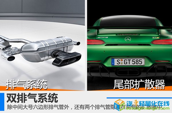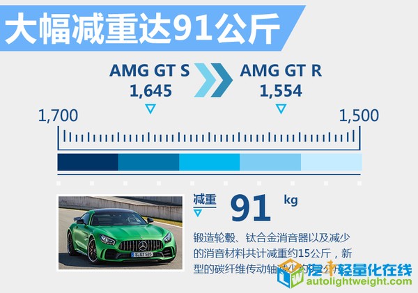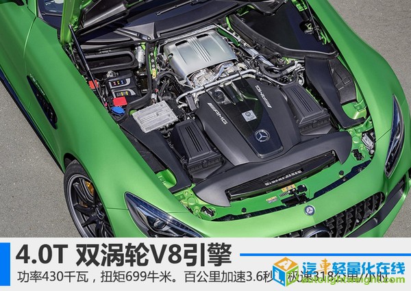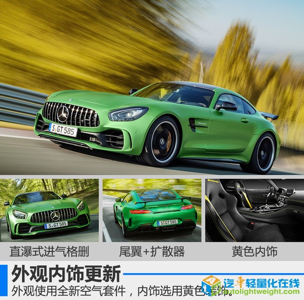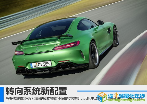 奔驰旗下的AMG团队一直致力于性能车的研发,早在去年5月,就公布了独立于奔驰车系的AMG-GT和AMG-GT S。在今年,古德伍德速度节上,奔驰发布了其家族又一悍将 AMG-GT R。网通社从奔驰公布的官方信息中得知,此次推出的AMG-GT R较之前版本将有质的提升,其也将成为目前AMG-GT家族中动力性能最强的产品。 搭载4.0T双涡轮 动力大幅提升 新调校的4.0升双涡轮增压发动机的最大输出功率达到430千瓦,峰值扭矩达到699牛米。涡轮增压器的增压压力也从普通版的1.2bar增加至1.35bar,其最大转速可达186,000转/分钟。百公里加速时间比GT S版本还要快上0.2秒,达到3.6秒,极速可达318公里/小时。 得益于“内置增压器”的设计(涡轮增压器不安装在气缸外,而是至于其内部的V型夹角中),引擎的尺寸更小,尾气排放更加自如。传动方面,使用AMG优化过的7速干式双离合变速器,可以有效降低重心并提升高转速区间的性能。 采用全新动力套件 外观内饰更新 AMG-GT R并未使用AMG特有的单横幅式进气格删,而是效仿AMG GT3,采用直瀑式的竖条纹格栅,配以全新设计的空气动力学套件,使得前脸更加饱满。车辆尾部同样使用全新的空气动力学套装,并配备黑色尾翼,大尺寸的尾部扩散器几乎布满了整个车尾。至于内饰方面并未做太大改变,仅将色调改为黄色。 轮辋尺寸并未更改,但相较于GT S版选用更宽的轮胎,前后胎尺寸分别为275/35 R19 325/30 R20。直径390毫米和360毫米的前后通风孔盘几乎填满了整个轮内空间,刹车卡钳同样采用黄色。用户还可以选装陶瓷复合制动系统,其制动盘尺寸分别为402毫米和360毫米,重量则能再降低16.7公斤。 零件全方位更新 重量大幅降低 新车进行了大幅减重,整备质量从GT S的1,645公斤(海外版数据),减少至1,554公斤,减少了约90公斤。其中新型的锻造轮毂、钛合金消音器以及减少的消音材料共计减重约15公斤,新型的碳纤维传动轴重量仅为13.9公斤,减少约9.2公斤(减重40%)。 黑科技—主动空气动力系统 全新设计的空气动力学套件并不是简单固定在车身上而已,在竞速模式(RACE)下,时速达到80公里时,位于车身底部的扰流板(重量仅为两公斤)会自动向下移动40毫米,以提高空气动力学性能,在时速250公里/小时的时候可以有效减少前轴40公斤的负荷。其他扰流装置也将由电动控制,时刻保证空气动力学和车辆温度的最佳状态,改善操纵稳定性。 黑科技—双排气系统 与普通车辆的排气不同的是,为了保证其性能,AMG-GT R在排气尾端并未将全部尾气送入三元催化器,而是进行分流,除了中间大号的六边形排气管外,还有两个排气管隐藏在两侧的扩散器中,这样使得排气更加均匀,提高了其散热性能。 黑科技—后桥限滑差速器9级可调 在切断ESP工作后,驾驶员仍可根据实际情况进行后轮输出的控制,从1级应对湿滑路面的高安全性,到9级允许最大限度后轮滑动,可以帮助驾驶员更自如的驾控车辆,调节方法为中央出风口下方的黄色旋钮,围绕旋钮的LED光带会显示此时的限滑档位,仪表盘上也会同步显示。 黑科技—转向系统 AMG-GT R在不同车速时对应不同的转向比,且根据当前横向加速度和驾驶模式的不同提供不同的助力效果,使驾驶员获得来自路面的最完美的反馈效果。在AMG车型中,新车首次应用了后轮主动转向系统,由电动马达控制,后轮可进行最大1.5度的角度变化,提高其过弯的稳定性。 |