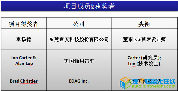 ![]() 据介绍,宜安科技镁合金车门项目经由国际级别组成的专家评审系统评定后荣获这项殊荣。宜安科技和通用汽车研发的超薄超轻的镁合金车门内板正成为汽车行业轻量化发展的先锋。从往年的历届获奖项目来看,汽车镁合金产品设计越来越受到镁行业内更高的重视与更多的关注,镁合金产品在同样保证车辆的所需性能的前提下,因其密度是所有轻合金当中是最低的(约 1.7g/cm3)较其他合金具有非常诱人的减重优势,且同时具备充分的可循环利用和充足的可用性,对减少 CO2 的排放产生巨大的作用。在这个环保意识越来越被强调并注重的时代,人们在追求着更高性能产品的同时,不断调整自身经济活动和社会行为,汽车零件轻量化已经是全球众多汽车厂家研发的重点,镁合金的应用将为汽车轻量化提供非常重要且必不可少的贡献,世界将更“镁”丽。