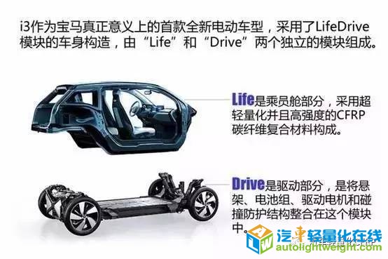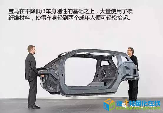 如你所见,在纯电动汽车中,看起来胖乎乎的宝马i3其实并不重,反而比诸多前辈要轻。宝马让它保持体重的秘诀只有一个——大量使用碳纤维增强复合材料(CFRP)。宝马i3是采用碳纤维复合材料(CFRP)应用于汽车轻量化设计中的典范,并将推广应用到更多的量产车型。