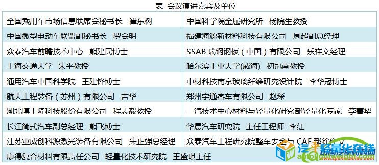 | 近年来,在能源压力和国家政策扶持下,新能源汽车迎来快速发展,销量不断攀升。2017年新能源汽车产销量分别达到79.4万辆和77.7万辆,同比分别增长53.8%和53.3%。新能源汽车“三电”系统约占整车整备质量的1/4左右,有数据显示,在传统汽车基础上设计的新能源汽车比传统燃油车整备质量增加15%以上。重量的增加,显著影响其电耗、动力性、制动性能、被动安全性、一次充电续航里程等,因此新能源汽车的轻量化显得更为重要。大幅减轻整车其他零件的重量才能抵消电池增加的重量,轻量化能显著提高电动车的续航能力,是突破瓶颈的有效手段之一。新能源汽车轻量化,离不开高强度钢、镁铝合金、高性能塑料和碳纤维复合材料等轻量化材料的应用,然而轻量化新材料的应用,又涉及全新的设计理念、结构设计、成形工艺、性能评价与验证方法的应用,这对整个汽车行业都是极大的挑战。 为了强化行业对新能源轻量化技术应用的认识,加快推进新能源汽车轻量化技术应用与产品研发,促进材料供应商、零部件厂商、科研机构与新能源整车厂的交流与合作,由中国汽车材料网主办的“2018(第三届)新能源汽车轻量化技术研讨会”将于2018年6月21-22日在重庆召开。 会议邀请汽车新材料与轻量化领域专家,围绕新能源汽车全新架构轻量化结构设计、超高强度钢、铝合金、镁合金、碳纤维及其复合材料、高性能塑料等轻量化材料,以及各种轻量化材料的成形工艺与连接技术等热点问题展开培训与交流。会议期间,结合未来5年新能源汽车企业的产品规划和轻量化技术需求,特设轻量化产品展台,进一步促进参与人员的合作交流。 主办单位:中国汽车材料网 会议时间:6月21-22日 会议地点:重庆 • 汽车厂轻量化、材料、产品设计、工艺、项目管理、质量和采购工程师等工程技术人员; • 汽车轻量化零部件企业的技术管理人员、产品工程师和销售工程师; • 汽车用钢、碳纤维及复合材料、铝合金、镁合金、塑料等原材料企业的技术与市场人员; • 汽车设计公司、软件企业、装备、模具以及材料连接技术企业的技术人员和销售人员; • 从事汽车轻量化技术研究的高等学校和科研院所负责人、工程技术人员、研究生等; • 政府部门、行业协会的领导或专家。 • 国内新能源汽车发展现状及趋势探讨; • 汽车轻量化技术路线及新能源汽车轻量化技术应用现状; • 微型电动车的市场前景分析及轻量化技术需求; • 主要新能源乘用车企业轻量化技术开发与应用经验分享; • 全铝电动专用车轻量化设计与开发; • 微型电动车全铝车身轻量化设计; • 全铝电动客车的轻量化技术开发与应用; • 电动客车镁合金轻量化技术开发与应用; • 全新架构碳纤维复合材料新能源乘用车; • 国产高端电动乘用车轻量化设计开发。 • 多材料新能源汽车车身轻量化结构设计方法; • 电动汽车(铝合金、钢板、碳纤维复合材料、SMC等)电池包轻量化方案; • 新能源汽车铝合金(液压成型管、挤压型材、半固态成形铝合金、铝合金压铸、锻造铝合金、铝板等)轻量化零部件; • 低成本车用碳纤维复合材料的成形工艺及在新能源汽车上的应用; • 碳纤维复合材料零部件回收技术; • 高性能塑料覆盖件、长玻纤复合材料结构件(复合材料结构设计与仿真,后背门、塑料侧围、PC玻璃等); • 3D打印技术及其在新能源汽车开发中的应用前景; • 新能源汽车钢质(第三代钢、变厚度板和热冲压等)材料解决方案; • 镁合金(仪表板横梁、门内板、座椅和车轮等)在新能源汽车上的应用前景; • 轻量化多材料连接技术(铆接、铝合金电阻点焊、搅拌摩擦焊和胶粘等)解决方案; 注:以上为会议主要议题,报告内容及专家安排在会前2周确定。 轻量化材料及制品:车用高性能工程塑料、塑料侧围、塑料翼子板、塑料后背门、复合材料座椅、复合材料/铝合金仪表板横梁,碳纤维复合材料、玻璃纤维增强复合材料、挤压铝型材、全铝车身、镁合金零部件、碳纤维车身、铝合金轻量化电池 包、碳纤维复合材料电池包、SMC电池包等等。 轻量化工艺:3D打印增材技术、RTM工艺、微发泡、半固态成形、内高压成型、变厚度板(VRB)技术、热冲压成形、三维辊压成型技术等。 轻量化连接技术及装备:冲铆连接、点焊、结构胶、搅拌摩擦焊和激光焊接,相关材料检测设备及仪器等等。 2018年5月15日之前付款:2500/人; 2300/人(3人及以上团队价格) 2018年6月05日之前付款:2700/人; 2500/人(3人及以上团队价格) 2018年6月05日之后:一律按照3000元/人收取报名费 注:全日制在校学生优惠1000元/人,以上费用包含会务资料及餐饮,住宿及交通,费用自理。 产品样品展示费:5000元,一个约1m长桌标准展位。 诚邀行业同仁参与及赞助合作,我们将为赞助合作伙伴提供:冠名支持、会场报告、会刊广告、参会证、资料入袋、产品展示、易拉宝等多种赞助服务,辅助企业提升企业形象、提高产品竞争力、推广企业技术实力,让行业从业人员更加深入地了解企业技术及产品实力,进一步拓展企业业务范围,我们期待您的加入! 赞助及报名电话:0551-63857995;17756072694; 联 系 人:张小姐 邮 箱: marketing@qichecailiao.com “2017(第二届)新能源汽车轻量化技术研讨会”于7月6-7日在浙江杭州电子科技大学成功举办。会议汇集了国内整车及零部件企业代表、科研院所的专家学