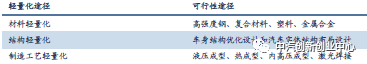 图:汽车各部件重量占比 汽车轻量化作为一个系统化的工程,并不是简单地针对某个零件的单独减重,局部重量的变化在很大程度上会影响汽车的其他部位,因此汽车轻量化是指在汽车制造过程中集设计、制造、材料技术等一起的系统性工程。在对汽车进行轻量化设计时,主要有以下三个途径: