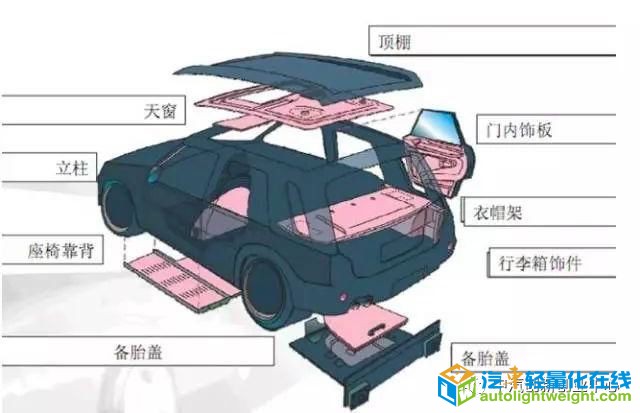 图:GMT片材内饰顶的应用举例 玻璃纤维增强复合材料具有优异的综合性能,是当今塑料复合材料最重要的发展趋势之一,在汽车上的应用前景很可观。玻璃纤维已开始在欧洲和美国的汽车制造业中广泛使用,但在国产汽车上还未得到广泛的应用。 未来,车用玻纤材料需要着力从以下几个方面进行改进: