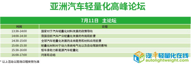 全方位探讨汽车轻量化的未来 论坛将吸引涵盖中国国际铝工业展和亚洲汽车轻量化展的两万余名专业观众,同时,主办方将以主题演讲、高端对话、圆桌讨论等多种方式于一体,充分交流、积极探讨,共同创造汽车轻量化的明天! 2018亚洲汽车轻量化展览会将于7月11日在上海新国际博览中心盛大启幕,专业高峰论坛将助力展会更具深度、权威性和专业性。据了解,主办方将开放高峰论坛预登记通道,提前进行论坛预登记的小伙伴即可免费获得价值800元听会券,免费了解汽车轻量化行业的一手资讯。高峰论坛预登记通道信息将第一时间在展会官方微信发布,感兴趣的小伙伴们要关注喽~