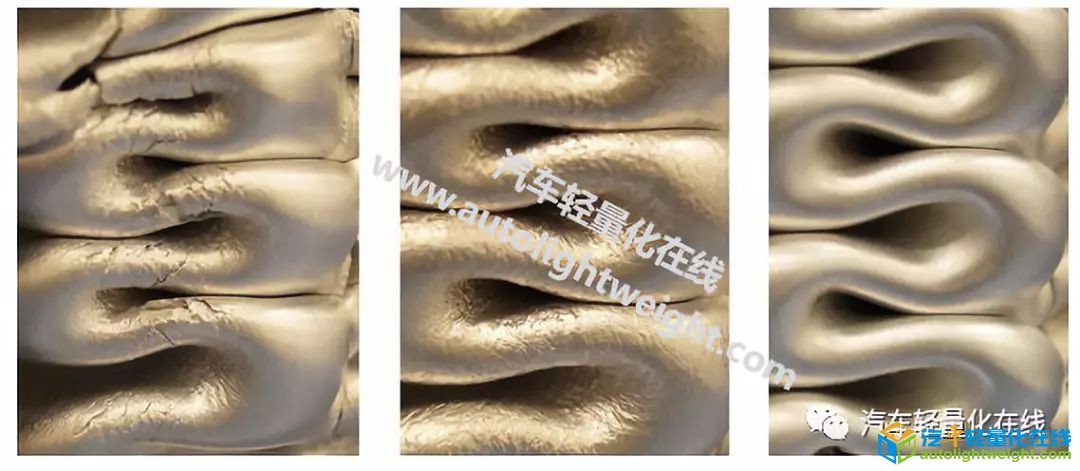 铝制安全部件对车辆设计的要求最高。德国Leichtmetallkompetenzzentrum Ranshofen和Hammerer Aluminum Industries Extrusion通过合金改性和型材截面的几何优化改善了挤压型材的碰撞特性,实现了增加能量吸收和减少断裂失效的风险。 1.铝合金的碰撞性能 本文描述了如何改善挤压双室型(日字形)材的碰撞特性,该型材在车身承重结构中用作车辆的安全部件。为了增加型材在碰撞时的能量吸收特性,研究人员提高了材料的屈服强度。虽然这可以改善部件的轻量化设计,但是改变合金会对碰撞特性产生不利影响。 本文提出了一种解决几何形状和微观结构以改善轮廓的方法。碰撞性能由标准化,准静态压缩测试确定。 2.改善碰撞特性的方法 试验的开始阶段确定了截面的关键区域,这些是由于变形而发生材料失效的区域。 外形尺寸为100mm×80mm,壁厚为2.8mm的型材通过韧带分成两个对称的腔室,如图1所示。两条T型材将韧带与外壁连接起来。在折叠过程中,300毫米的轮廓被压缩三分之二。理想情况下,折叠方向在两个室之间交替,形成不对称的折叠图案,如图2所示。在压溃过程中,必须确保型材不发生折叠断裂。 Figure1 ExaminedAluminium extrusion profile (two-chamber profile) (©Leichtmetallkompetenzzentrum Ranshofen) Figure2 Firstfolds on the two-chamber profile (© Leichtmetallkompetenzzentrum Ranshofen) 应用LS-Dyna软件,采用有限元(FE)方法模拟轮廓的准静态压缩。 早期的模拟评估表明,在形成褶皱期间的高应力导致材料失效,特别是在型材的T形截面处。T形截面特别重要,因为这里可以找到截面最窄的半径,并且由于不对称的折叠模式会出现复杂的张力模式。此外,T型材也是型材生产过程中的关键区域。由于材料的积累,冷却条件比型材横截面的其余部分差。因此可以通过两种不同的方法来改善撞击特性: (1)微观结构优化 (2)减少缺口应力 然而,解决问题的边界条件是:材料和几何形状的变化只能在客户规格内移动。这意味着对进一步的加工步骤有影响的轮廓不能有显著改变。例如,尺寸公差必须符合。 2.1微观结构影响 最佳冷却条件和强度必须针对每个剖面横截面特性单独确定。在防撞型材的情况下,此因素变得更加重要;只有高冷却能力才能实现良好的折叠而不会断裂。 为了进一步提高碰撞性能,即防止断裂,可以在规定范围内修改合金组成。目的是生产一种细纤维的微结构,在变形过程中不会在表面形成橘皮,如图3所示。这可以保证发生碰撞时虽然变形,但之后不产生可能导致故障的表面破裂。 添加诸如锰,铬,铁,锆和钒的合金元素。添加剂的用量可以为0.05至最多1wt.%。当不同的弥散相形成合金元素例如锰和铬被结合时,它们的作用就会增强,并且约0.3-0.5wt.%的量产生的增强效果就已经足够。 Figure3 Alloywith low (left), medium (middle), and high chromium content (right)(© Hammerer Aluminium Industries Extrusion) 总之,可以说,型材的强度由主要合金元素硅和镁来调整。通过添加诸如锰和铬等元素,微观结构可以受到正面影响,使得在发生碰撞时不发生或仅发生轻微的表面断裂。 2.2降低缺口应力 图4显示了T形截面中的传统半径如何被新的几何结构所取代。用三个连续的拉伸三角形进行设计,其尺寸由参数lrad确定。通过设计确保组件的重量不会显着增加。此外,折叠图案不得受到不利影响。 Figure4 Schematicdepiction of the tensile triangle design (©Leichtmetallkompetenzzentrum Ranshofen) 在进一步的仿真试验中,将改进的几何图形与原始轮廓进行比较。研究了出现的应力,能量吸收和折叠模式。随后,使用挤出型材进行压缩测试以验证模拟。 第一次折叠形成过程中剖面的横截面(图5)显示了由于失效模型而出现的最高荷载和第一个单元被侵蚀的点。两个条纹图的比较清楚地表明,T形截面的第一主应力因适应的几何变化而减小。这种应力的方向与剖面横截面平行。 Figure5 Numericalcomparison of the original geometry with the improved tensiletriangle design (© Leichtmetallkompetenzzentrum Ranshofen) 结果表明,改变半径的引入导致临界应力的减少。具体来说,应力可以减少4.7%。此外,在T形截面上用拉伸三角形设计的剖面模拟表现出较少的侵蚀元素,表明实际剖面中材料失效较少。这种材料失效的减少导致比能吸收增加2.7%。 仿真试验还显示该变化对轮廓的折叠模式没有影响。与原始设计相比,附加材料(图4)不会阻止两个腔室不对称折叠的轮廓。该轮廓的由可忽略的几何变化产生的额外重量约为17g / m。 通过比较压缩测试的结果,图6(左)可以看出明显的差异。具有常规半径的轮廓在T形截面处的轮廓中显示出几乎多一倍的裂纹。裂纹也会导致褶皱具有不同的高度,导致不规则的折叠模式。 Figure6 Comparisonof the folding patterns of a profile with conventional 3 mm radius(left) and a tensile triangle design with a lrad of 2 mm (right)(© Leichtmetallkompetenzzentrum Ranshofen) 对于T形截面中具有拉伸三角形设计的型材获得了不同的结果。折叠图案是规则的,并且裂缝呈现减少趋势,图6(右)。不同的折叠图案导致T形截面中具有拉伸三角形半径的型材中的能量吸收增加5.4%。因此,测试超出了模拟结果。 3.改善铝合金碰撞吸能性能的方法总结 高强度双室挤压型材的碰撞行为通过合金改性和几何调整得到改善。 对于材料的碰撞特性,材料呈现出非常细小的纤维结构是非常重要的。这可以通过在挤压型材之前和期间防止再结晶来实现。除了