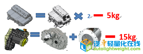 参评技术:高效四驱电驱动系统研发及应用 技术简介 一款满足800-1000公里出行要求中大型增程式SUV,匹配双电机的四驱电驱动系统,在设计阶段通过精细的计算和速比匹配,将车辆运行工况与电机效率相结合,前后电机一直工作在高效区,使续驶里程最大化;机械结构上采取电机和减速器集成方案、双电机控制器的集成方案,使动力总成重量降到最低。 前驱动电机峰值功率较小,转速较高,电机系统的高效区集中在高转速区间,通过匹配较大速比,使电机更多的时间工作在高效区。后桥匹配一个功率较大的电机,该电机转速较低,且在中低转速段电机系统效率较高,匹配一个稍小的减速比,使该电机更多的工作在高效区。 采用双电机控制器的结构集成方案,相比于分体方案重量减轻约5kg,采用电机带减速器集成结构方案,总成重量减轻15kg,电驱动系统总计减重20kg。 |