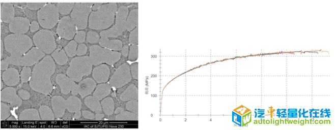 参评技术:非热处理强化一体化压铸铝合金减震塔 技术简介: 本项目以大型薄壁车身结构件——减震塔作为应用对象,由上海交通大学牵头,联合相关企业,共同攻克了高强韧非热处理铝合金材料研发、零件集成设计、模具设计制造及高致密度压铸工艺等关键技术,成功实现零件试制并通过台架测试。 关键成果1. 实现“五合一”的产品集成设计,减重效果达到39% 实现铝合金减震塔集成5件钢制零件为一体,并同时提供底盘减震塔及其他零件的集成安装。减重效果由原钢制减震塔的3.2Kg,减至铝合金减震塔的1.95Kg,减重率达到39%,并且与原钢制结构刚/强度相当。 ![]() 关键成果2. 开发非热处理高强韧铝合金材料,实现零件压铸近终成型 现有大型薄壁结构件主要通过超真空压铸和热处理来获得零件所需的强韧性,这对模具加工、压铸工艺及生产管理提出了极高的要求,生产成本大幅提高。针对这一现状,成功开发了高强韧非热处理压铸铝合金材料,普通压铸条件下的性能超过常规铝合金(AlSi10MnMg)材料热处理以后的性能,实现零件直接压铸近终成型,无需超真空系统及热处理工序,大幅度降低生产成本,提高生产效率。 ![]() 关键技术3. 特殊结构的浇注系统与模具结构设计,在常规真空压铸条件下实现零件的高致密度压铸 针对减震塔的结构特征,结合压铸成型金属流动和充填规律以及新型压铸铝合金材料的凝固特性,设计了特殊结构的浇排系统以及模具温控系统,实现模具温度场的均匀可控,使得铝合金熔体在压铸过程中达到顺序充填和凝固,有效减少了零件中的气孔和缩孔等铸造缺陷,实现了高致密度压铸,零件综合孔隙率低于1%,通过了子系统测试验证。 ![]() 小结 本项目结构设计减重效果达到了39%,基本接近减重极限,最大限度地优化了零件结构设计,实现减重效果。新材料直接压铸后无需热处理本体材料性能达到屈服强度150-170MPa,抗拉强度300-330MPa,延伸率10-15%,性能优势明显。将孔隙率控制在1%以下,低于结构件对孔隙率的最低要求,实现真正意义上的高致密度压铸。 目前压铸铝合金减震塔仅有国外中高端品牌的汽车如宝马、奥迪、凯迪拉克等车型应用,近年来随着自主品牌技术提升和品牌知名度的崛起,对高端零部件的需求增加,开展本项目有助于我国掌握大型、复杂、薄壁汽车结构件从集成设计、材料性能、成型工艺全链条的关键技术,缩小与国外同行的差距,为推动我国汽车产业的发展给予助力。 是否产业化:基础预研技术 |