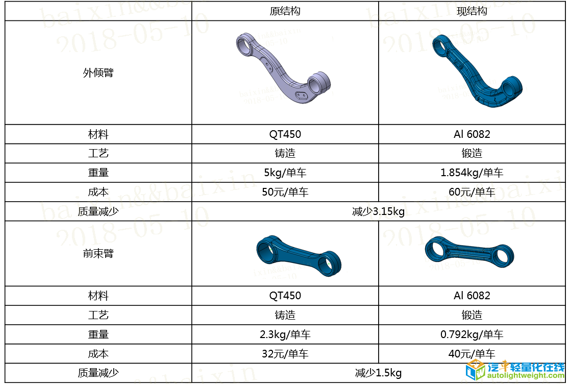 参评技术:锻造铝合金控制臂技术简介 M01车型为车和家自主开发的高端、智能的中大型新能源SUV汽车,主推智能、高续航,低能耗。整车通过先进的生产理念、全新的生产工艺以及高端的材料等手段,完成重量、成本、续航最优的目标,达到同级别车型能耗与成本的完美平衡。后悬多连杆结构,臂类广泛采用铝材,降低整车重量,提高底盘操控性及整车动力经济性。 后悬摆臂采用锻铝工艺及材料,并经过多轮CAE拓扑优化,达到轻量化目标,最大程度实现动力经济性及减少单件成本。 锻铝工艺相对成熟,但在整车后悬多连杆结构中,尤其同级别车型中,广泛采用的还是冲压钣金结构或铸铁结构。相对于铝材质,钣金件成本相对较低,但悬架簧下质量较大,影响正常操稳性能、动力经济性等等。