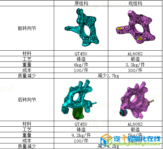 参评技术:锻造铝合金转向节技术简介转向节采用铝材,降低整车重量,提高底盘操控性及整车动力经济性。 转向节采用锻铝工艺及材料,并经过多轮CAE拓扑优化,达到轻量化目标,最大程度实现动力经济性及减少单件成本。 锻铝工艺相对成熟,但在整车制动系统结构中,尤其同级别车型中,广泛采用的还是铸铁结构。相对于铝材质,铸铁成本相对较低,但悬架簧下质量较大,影响正常操稳性能、动力经济性等等。技术与产品较为成熟,具备产业化。 小结 锻铝工艺相对成熟,但受限于成本压力,小型到中等车型后悬摆臂采用锻铝结构基本接近于0%,中高级轿车仅有少量车型采用锻铝仅约20%,大部分合资及国内车企仍采用板金件。车和家M01项目为追求更极致的底盘操控性及整车动力性,后悬摆臂采用锻铝结构,自主设计,从三维数据、拓扑分析,均针对M01车型本身,且经过多轮反复设计优化后,冻结开发。 是否产业化:待量产 |