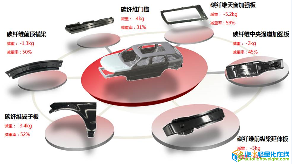 碳纤维复合材料密度通常在1.7g/cm3,远远低于制造业常用的钢材(单件约可减重50%),且其断裂韧性、抗疲劳性、抗蠕变性都高于汽车常用的金属材料,众泰汽车目前最新研发的I•LFA纵置平台项目中,便采用了一种混合有碳纤维复合材料、铝合金、塑料及钢等多种材料,并使用先进连接工艺的新型车身。