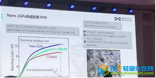 从白车身的材料谈起,在历史上有两个节点。第一个节点是钢板的大量应用,这也是白车身最早的开端。亨利·福特从 Model T 开始,用流水线生产汽车,同时给工人加工资,让工人买得起自己生产的汽车。汽车成了工业化产品之后,钢板也得到了大量使用,白车身从非承载式车身转变到了承载式车身。 第二个节点就是铝合金车身的应用。奥迪是第一个成功把全铝做成产业化的厂家,最早在奥迪 A8 上应用。孙博士提到,这是把技术推到极致的典型代表。 梳理完这个基础知识,我们就好往下聊了。 钢和铝 第二个要谈的概念是钢和铝。还记得说钢很有活力的孙博士吗?他还用了一个形容,钢一点也不 low。这是因为钢有相变。所以钢的可玩性很大,创新东西很多。比如曾经在实验室呆过不短时间的孙博士说,实验室里有非常多好玩的,奇妙的变形钢体。这算不算第一次为钢正名。反观铝板并没有那么多的进步,因为铝就是一个强化模式,简单,变化少,主要常见的就是 5 系铝、6 系铝和 7 系温成型铝。孙博士说,所有的材料都在不断进步。随着材料的进步,如何选择材料是一个动态的问题。车身发展不是一个线性的关系,全铝车身的出现也不是对全钢车身的一次飞跃。 当评判钢和铝哪个更好时,要注意每个厂商都是在自己的框架下,基于自己的车辆定位、供应商技术、研发历史甚至是专利等条件下来造车,不同的材料对应的是不同的策略。 谈到爱驰自己的作品,孙博士提到,爱驰首款定位于纯电动 A+ 级 SUV 的量产车型 U5,使用了上钢下铝的结构,为爱驰首创。首创这件事情很重要吗?当然。孙博士还做了一个有趣的补充,他们看重技术的首创性,而不是唯一性,是希望从汽车产业的角度,能够对行业的发展有所启发和影响。目前就有其他厂家在跟进上钢下铝的结构了。而在谈到全铝车身时,孙博士也多次致敬并欣赏奥迪的首创性。 用了钢铝混合之后,对整车轻量化有什么影响呢? 根据孙博士提供的数据,在 U5 的整车轻量化减重进展中,白车身减重大约 50 kg 左右。铝的下车身结构承担了主要的轻量化职责,同时,可以实现更好的操控性。而上车身使用钢,既有安全性的考虑,也有利于碰撞后更低的维修成本。爱驰汽车联合创始人兼总裁付强还提到一句话,选择上钢下铝的车身结构,不仅仅是出于工程上的考虑,这背后还有为了维修便利,为了消费者的接受度而做的努力。 强度和刚度 在进一步谈到钢时,必须要说强度和刚度。因为我们区分不同类型的钢时,常常说某某兆帕的钢,这个指的就是强度。对此,孙博士的解释是,强度决定了车身的安全性,而刚度则更多地与 NVH 和舒适性相关。很多人会提到抗拉强度和屈服强度。比较常见的是,美系和德系喜欢用抗拉强度,而日系喜欢用屈服强度。 爱驰对强度的定义 爱驰的定义使用的是抗拉强度。抗拉强度小等于 500 兆帕的是传统钢,大于 500 兆帕的是先进高强钢,1500 兆帕的是热成型钢,而 2000 兆帕的则是超高强纳米热成型钢。 爱驰在 U5 的四个车门防撞梁上,使用了 2000 兆帕的热成型钢。因为碰撞的基本原则就是在驾驶员附近,需要更小的侵入量,所以需要使用更强的材料,这四个防撞梁可以在侧碰的时候起到很好的作用。这里又要说到有活力的钢这个梗了。2000 兆帕的热成型钢,就是孙博士说的钢上出现的新东西。 为什么原来的车身上不怎么见到 2000 兆帕的热成型钢呢? 孙博士提到了另一个性能,那就是断裂韧性。断裂韧性的性能在于碰撞后抵御裂纹扩展的能力。 传统 2000 兆帕的热成型钢,断裂韧性比较差,使用效果可能还不如使用 1500 兆帕的热成型钢。 为了达到更好的断裂韧性,爱驰在 2000 兆帕的热成型钢中添加了钒的元素,形成了纳米碳化钒的颗粒,最终提高了断裂韧性的表现。另外,增加这道工序也并不需要增加太高的成本。 超强热成型钢的最核心指标是高韧性 总结一下,三个特点,高强度,高韧性,和低成本。 热成型钢和高强钢是一直存在竞争的关系,用孙博士的话是,热成型钢是一个工程问题,而冷成型钢是一个科学问题。 A 柱和 B 柱上高强钢和热成型钢的使用