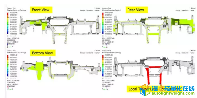 轻量化是汽车节能、提高性能与续航能力最有效措施之一, 汽车的整体轻量化是一个系统性工程,涉及到汽车的各个部位以及不同轻量化材料和新技术的运用。日前,众泰成功开发出轻量化仪表板横梁,并开始将新材料运用到新的车型项目上去。 在材料上,众泰仪表板横梁采用了全新的镁合金,这种合金的主要优化是非常轻,密度只有1.8g/cm3左右,同时在物性方面也有上佳的表现。在结构上,采用骨架一体成型,主要安装到车身两侧A柱钣金上,为了提高整体结构稳定性,不但在转向管柱上有设计了车身安装点,在中控处也增加了2个连接点,增加结构强度。另外,仪表板横梁除了为转向管柱、仪表板、空调等大件提供安装点,还为很多电器模块提供安装,集成度很高。