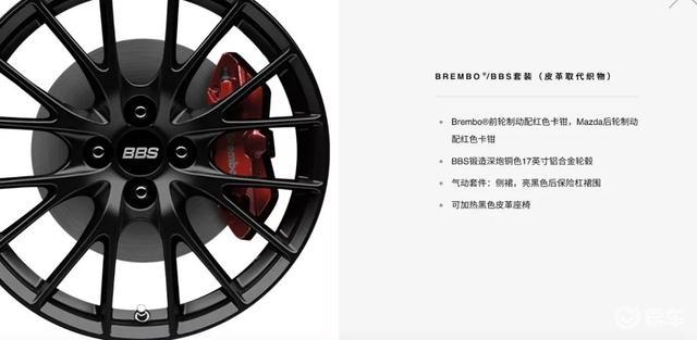 那为什么MX-5会出现在这个文章里,因为MX-5有两个动力选项,上面说的都是基于2.0L动力版本,而1.5L动力版本的手动软顶MX-5,它的车重则是990kg。其实轻一直是MX-5的亮点,第一代(NA)产品就940kg,后来二代(NB)、三代(NC)体重稍有增长,不过到了第四代(ND),体重又重新控制在了1000kg以内。 所以你看就这么一个小车,动力也不强,正因为足够轻量化,驾驶乐趣的标签也一直被贴的死死的。再加上手动设定,原厂还有性能包选,CLUB版本本身就带有GT-S套装里的防滑差速器、Bilstein减震器、塔顶平衡拉杆了,而可选的性能包里则是BBS轮毂、Brembo刹车、RECARO座椅,简直是一步到位。看到这里大家也都把口水擦擦吧......因为国内没有。