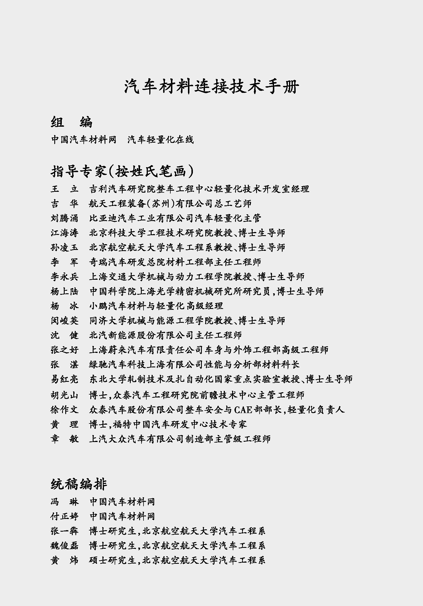 连接技术及产业链资源进行系统梳理,组编了《汽车材料连接技术手册》,为整车、零部件企业的连接技术选择提供技术参考。