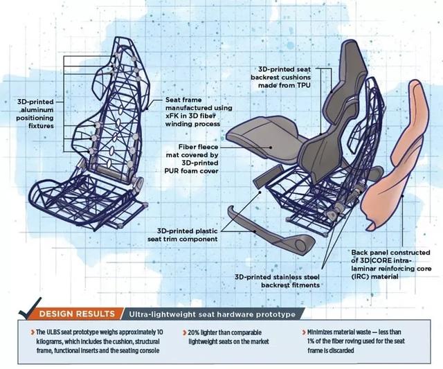 【汽车轻量化在线】对汽车行业以及诸如超级跑车和航空出租车等新兴市场具有潜力的一个创新项目,采用先进的有生产力的技术,重构汽车座椅,并根据需求,只在正确的地方使用正确的材料,并快速产生结果。 通过采用仿真驱动的设计方法、敏捷项目管理方法以及参与公司之间的紧密合作和系统集成,最终,开发出了金属-复合材料的超轻汽车座椅原型,从设计到制造,仅用了7个月的时间。 打造更好的座椅 多家德国公司合作,采用一种组合技术,开展了Ultra leichtbausitz(简称ULBS)超轻座椅的可行性研究。该项目的愿景是:创造一种超轻座椅概念,以在重量优化方面引领市场。 作为发起公司的csi entwicklungstechnik GmbH(简称csi)、Alba Tooling & Engineering(简称Alba)和Automotive Management Consulting(简称AMC,),与科思创、LBK Fertigung、Robert Hofmann和3D|CORE合作,开发了这种原型座椅概念。 该合作项目最终开发出的座椅原型重量略高于10kg,含坐垫、结构框架、功能嵌件和座椅控制等,这使其便于安装到汽车上。该座椅比市场上的同类轻量化座椅(其中许多为后市场座椅)轻20%。 ULBS项目负责人、CSI公司负责轻量化设计的Stefan Herrmann表示,目前市场上还没有重量低于12kg的竞争座椅。 “直接的对比通常不是一一对应的,因为后市场座椅对重量的定义通常不含有座椅控制。”Herrmann表示,“而且,与同等重量的座椅相比,ULBS座椅的舒适度要高很多。现有的座椅,通常是斗式座椅,虽然重量较低,却不太舒服;或者是传统的超级运动座椅,它们往往较重。” ULBS项目采用了几项创新技术,其中,基于xFK in 3D工艺技术的纤维粗纱骨架结构发挥了最重要的作用。 这项用于连续纤维粗纱沉积的获奖技术,其最根本的优势在于: ▶ 设计自由度; ▶ 能够通过仿真和材料优化,沿载荷方向准确铺放纤维; ▶ 能够简单、低成本且无浪费地应用纤维材料。 针对该框架结构中的载荷转移,使用了3D打印的部件:在载荷最大区域,如靠背装置,该座椅采用了高强度、高模量的不锈钢3D打印结构;在较低载荷区域,采用了铝制的3D打印部件。 该项目基于AMC发起的理念。专业生产汽车白车身结构以及汽车内外饰、并涉足碳纤维增强聚合物(CFRP)和增材制造的工程公司csi,负责该项目的监管和协调。 csi负责数字处理链领域中的工作包,包括该项目的造型、工程设计、表面设计、CAE仿真、拓扑仿真、验证仿真和虚拟确认。 ULBS项目之所以引人瞩目,不只是使用了创新材料和创新的生产方法,还包括能够在短短的7个月内,通过合作伙伴之间的紧密合作,开发出了含新组件设计的复杂部件。 缠绕骨架 在ULBS项目中,减重主要是通过采用AMC的xFK in 3D技术实现的,这是一种适用于缠绕部件的高度灵活、可配置、低成本且可持续的纤维复合材料技术。 xFK in 3D已在众多行业和众多市场领域的多种产品中得到应用。在JEC World 2018展会中,西格里集团就展示了一些采用该技术制成的汽车部件和自行车部件。由AMC开发的一种碳纤维自行车链环,与相应的铝制品相比,减轻了70%的重量。 xFK in 3D 工艺采用热固性树脂浸渍的连续纤维,以无废料的方式缠绕承载结构。由环氧树脂浸透的纤维粗纱被缠绕在固定装置或缠绕套管上,使纤维得到特殊排列,以便与每个部件的负载和所需功能相匹配。 “xFK in 3D的一个重要优势是,在载荷转移以及向结构中引入载荷时消除了薄弱点。”Herrmann解释道,薄弱点通常不是出现在结构的连续体中,而是出现在结构中引入载荷的区域,特别是相邻部件与结构相连接的地方。xFK in 3D技术支持跨连接的载荷转移,允许纤维根据所需的部件功能和负载情况进行排列,并按三维制造。 纤维缠绕工艺还会带来其他好处——它有助于最大程度地减少材料浪费,浪费的纤维粗纱不到1%。 在向AMC的技术负责人Clause Georg Bayreuther博士咨询后,csi认识到了xFK in 3D技术的优势,并设计了所要制造的ULBS座椅骨架。 Alba制造了用于生产CFRP座椅骨架的模具,并提供了工程支持。虽然该座椅骨架是由碳纤维缠绕而成,但天然纤维和玄武岩纤维也是很好的选择。 一种混合材料的结构 除了骨架,ULBS座椅原型还包括其他一些新的创新。Alba提供了模具,还提供了座椅泡沫体的工装、工程和制造支持并实施了座椅组装。一种纤维绒垫覆盖在座椅的CFRP骨架上,然后再覆盖上3D打印的PUR泡沫,坐垫由传统泡沫材料制成。 通过在座椅靠背的背板壳结构中应用3D|CORE,进一步减轻了重量。 3D|CORE是一种层内增强芯(简称IRC)材料,即以整体蜂窝形式存在的一种含挤出聚苯乙烯(XPS)和聚对苯二甲酸乙二醇酯(PET)泡沫芯体的结构夹层芯。在复合材料部件的生产过程中,该蜂窝结构由树脂填充,从而带来了极高的层内强度。 将3D|Core放在两层玻璃纤维之间,创造出一个预成型件,然后采用真空辅助树脂传递模塑成型(VA-RTM)工艺对其灌注热塑性环氧树脂。 科思创提供了其Dispercoll粘合剂,以用作纤维绒垫和3D打印的靠背垫的粘合剂。Herrmann介绍说,Dispercoll粘合剂的力学性能确保了良好的耐磨性,这非常重要,因为垫子与骨架之间的表面接触,会引起绒垫磨损。 “如果你有单根纤维粗纱,当你把它放入织物中时,会导致硬的CFRP部件与绒垫之间产生微小移动,从而使座椅骨架部件与织物之间产生摩擦,最终破坏织物。”Herrmann解释道。 传统的座椅通常有较大的表面积用来支撑软垫,但采用xFK in 3D技术制成的骨
