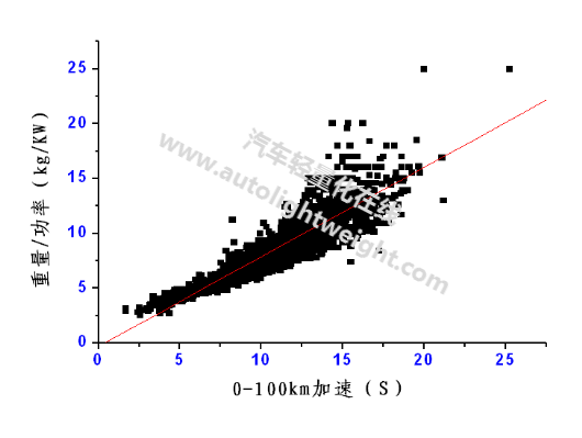 【汽车轻量化在线】(1)汽车轻量化对燃油经济性的影响 目前关于汽车轻量化对节油说法多种多样,相对量的说法,主要国际铝业协会的研究结果:每减小10%,可降低6%~8%的油耗;依据国内的统计数据,大概是乘用车每减重100kg,油耗降低0.4L/100km,见图1。而轻量化对节油贡献的数据是基于不同的研究方法而得到的结果,因此存在一定的差异,但汽车轻量化对降低燃油消耗量是有显著影响的。 图 1 乘用车油耗与整备质量间的关系(数据来源:CATARC) (2)轻量化对动力经济性的影响对于汽车来说,整备质量消耗了动力系统输出能量的约70%以上。目前关于汽车轻量化对节油说法多种多样,总体上可分为两大类:一类是绝对量的说法,如汽车质量每减小100kg,油耗可减少0.2-0.8L/100km。由于不同车型减轻相同重量时,对油耗影响不可能完全一致。并且这样的结论用在单一车型的累积减重的方案时,也是不适用的。因此不宜采用重量变化的绝对量来评价轻量化对降低油耗的贡献。 另外一类是相对量的说法,主要有以下几个: 1)汽车质量每减小10%,可降低6%~8%的油耗; 2)质量减小10%,则油耗可降低5.5%左右; 3)轿车质量每减小10%,则油耗可下降8%~10%; 4)德国亚琛汽车工程技术有限公司通过模拟研究得到,整备质量降低10%,油耗降低4.5%~6%; 5)博世公司研究发现:车重降低10%,油耗可降低约6%; 6) 国内学者根据统计学的研究得到,在整备质量750kg-2500kg的范围内,油耗降低7.5%~9%。 上述各种轻量化对节油贡献的数据均是基于不同的研究方法(CAE仿真、测试方法和路况差异等等)而得到的结果,因此存在一定的差异,但汽车轻量化对降低燃油消耗量是有显著影响的。 图 2 轻量化与油耗 |