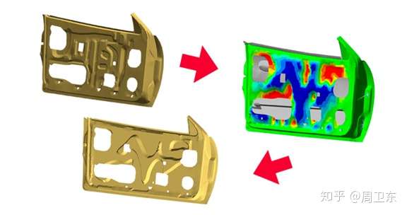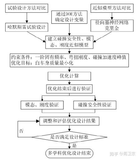 【汽车轻量化在线】汽车轻量化的方法包括“结构轻量化、材料轻量化、工艺轻量化”三个维度。结构轻量化,根据设计变量及优化问题类型的不同,可分为拓扑优化、尺寸优化、形状优化、形貌优化四种。材料轻量化,是通过汽车材料选型,实现多材料混合,在正常结构中的合理分布,实现自重的减低。工艺轻量化,是通过工艺实现材料性能的提升、形状和形貌的优化等,例如差厚板、拼焊板、液压成形等。下面重点科普一下结构轻量化的方法。 1、拓扑优化(Topology Optimization):包括连续体结构拓扑优化和离散体结构拓扑优化,前者是从总成的角度,找到有效载荷传递路径、最佳材料分布,提高整体结构性能和结构设计效率;后者是从零部件的角度,局部拓扑,优化材料布局,如开孔数量、大小、位置等。如下两图,分别是白车身整体的拓扑优化和零部件的拓扑优化。 拓扑优化的方法有变密度法、水平集法、均匀化法、进化式结构优化法、独立连续映射法等,常用的软件是OptiStruct、Genesis等。 ![]() 2、尺寸优化(Size Optimization):以零部件尺寸参数为设计变量,如板材厚度、截面面积等,寻找最优设计参数的组合。以白车身为例,分析板材厚度、车身截面对碰撞安全与NVH性能的影响,在保证原有结构性能指标的前提下,设计变量包括截面形状和板材厚度。如下两图,分别是白车身整体料厚优化和A柱断面尺寸优化。 尺寸优化的方法主要是灵敏度分析,设计变量可包括弯曲刚度、扭转刚度、模态等,通过确定在设计变量中哪个部分对结构响应最为敏感,进而获得最佳的设计参数和最关心部位的灵敏度系数,再相应的进行减薄和加厚处理。 ![]() ![]() 3、形状优化(Shape Optimization):在不改变现有拓扑模式下,以零部件的几何外形作为设计变量进行优化。如下图,在CAE的应力分析中,找到应力集中点,通过形状优化,起到提升零部件强度的作用。 ![]() 4、形貌优化(Topography Optimization):以加强筋、凹凸结构的形状、位置和数量等为变量,在不显著增加质量的条件下,改善钣金结构件的刚度及模态等。如下图,开闭件的内板通过形貌优化,在不增加重量的情况下,实现性能的达标。 ![]() 结构轻量化有以上四种方法,传统的优化流程如下,中间还穿插着不同性能优化设计后的交叉验证。这种流程存在很多缺点,包括周期长、成本高等。 ![]() 德国一家软件公司推出的SFE Concept是最近比较流行的,对全参数化车身的正向开发设计提出了车身概念设计优化流程。 ![]() 为了提高效率和准确度,集成优化是解决多个学科性能冲突的主要手段,基于多学科优化设计(Multidisciplinary Design Optimization,MDO)理论,将材料力学、计算技术、材料学和制造技术集成与一体,建立全新架构“性能-材料-结构”一体化设计方案技术路线,以尽可能高的效率求得整体最优解。以车身为例,多学科优化设计的流程如下。 ![]() 总之,汽车结构轻量化的最理想状态是“全部要求一次性输入,目标一步到位”,实现最大优化范围和最大优化效益。未来的发展方向包括3D打印、人工智能设计和优化等,都会不断的结构轻量化推向一个更高的维度。 |