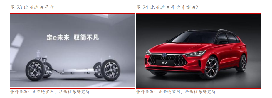 3)比亚迪:比亚迪是国内重要的传统燃油车厂商,同时也是重要的新能源厂商,在新能源汽车轻量化方面有较大优势。比亚迪在其e平台上将电机、电机控制集为一体,有效的降低了车身体积与质量。其中重量下降25%,功率密度却提升20%。