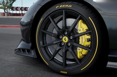 法拉利V12车辆首次使用复合材料车轮。它由CarbonRevolution生产,据说比同类锻造轮毂轻42%