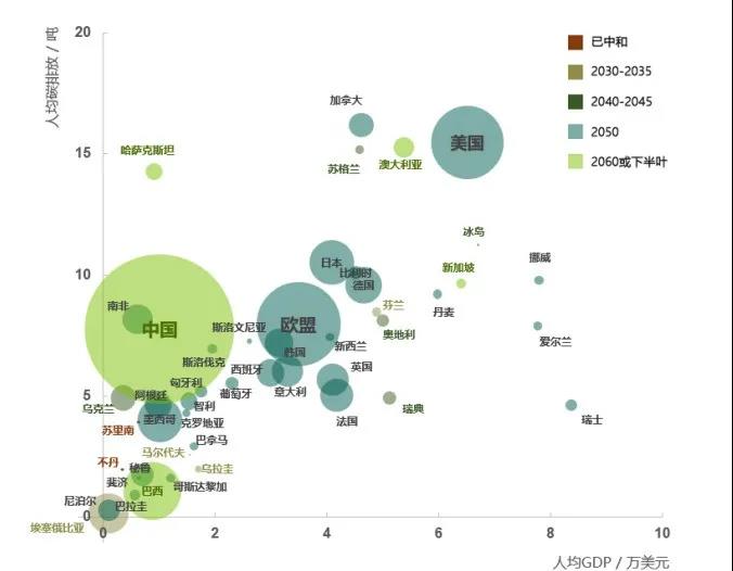 碳中和形势图 大家可能会说,2030年我们才碳达峰,现在还可以增加碳排放。其实不是的,现在就要开始减碳。碳达峰概念的重点不是达到最高点,而是到这点以后要下降。 我们现在就在减排,但为什么总排放量还在增长?这需要一个过程,当单位GDP的排放量减少到一定程度,我们的GDP增长和二氧化碳排放才能够不同步。也就是说,GDP即使增长,二氧化碳仍然还可以在往下降。 以GDP的降低来换取减排,这显然是我们做不到的,因为我们的人口在增长,各种物质生活的需要在增长。我们要做到的是经济在增长,同时用单位GDP的排放量下降带动达峰之后的下降,这绝对不是到了顶峰再降。 问:在您看来,双碳目标的提出是一个挑战。这一年,中国如何彰显大国行动力? 蓝虹:整体来说,中国在化石能源、工业制造、交通运输、建筑等领域,都在积极地推进减碳。 首先是化石能源的替换方面,我们的可再生能源,特别是风电和光伏发电在全球位居第一。特别是去年发生疫情,中国以一己之力维持了全球的可再生能源处于增长的态势。 而且在成本方面,我们在去年已经达到了和煤电持平,甚至更低,进而推进可再生能源在市场的份额扩张。也就是说,我们用可再生能源替代煤电,在能源的二氧化碳排放领域做了很大的推进。 其次是工业,现在二氧化碳排放占比最高。我们通过发展循环经济,引进碳捕捉和碳封存技术,同时通过技术改造、节能来大幅度地降低工业的用电量,以及工业的二氧化碳排放量。 目前工业二氧化碳的减少,主要在前端。通过节能,引进新的绿色技术,让能源使用减少。 前面是源头治理,末端治理方面也做了很多努力。比如碳捕捉碳封存技术也逐渐在铺展开来,但是现在的一个难点是成本比较高。 中国碳市场的价格目前是50元/吨左右,但通过碳捕捉碳封存,每吨减排的成本远远地高于50元/吨,意味着更多的是企业要出于责任,而非市场的推动来进行。但是随着新兴技术不断研发,按照现在的预测,一定有大幅下降的空间。如果它降到了比全国碳市场的定价更低,那么它就成为一个新的绿色产业了。 所以我们讲碳中和,前期确实是感受到了巨大的压力,它需要付出很多的成本。但随着绿色技术的市场化、规模化推进以后,成本下降,它会转化成一个盈利的新产业,叫做绿色低碳产业,成为我们GDP增长的一个源泉。 问:这一年无论中央还是省级政府,都在做一些上层建筑方面的调整。在您印象中,哪些比较深刻? 蓝虹:最近出台了生态保护补偿制度,包括把绿色金融纳入到框架之中,就很重要。因为二氧化碳是在高空运转的气体,外部性很大。我们在这里减碳,跟在美国和其他地方有一样效果。也就是说,减碳的收益是外溢的。 对于中国来说,也是一样。贵州、云南的森林、湿地,吸碳功能非常重要。但如果全部由当地的财政承担保护责任,就会对经济有比较大的压力,也是不公平的。