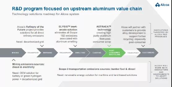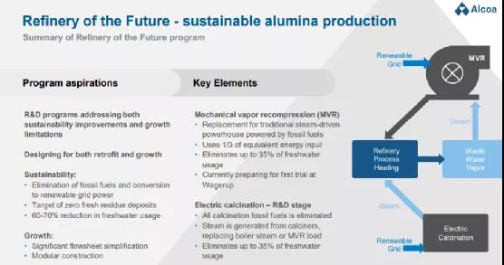 美铝(Alcoa)发布新的技术路线图,聚焦于低碳可持续发展的技术主线 【汽车碳中和】2021年11月8日,在美铝 [Alcoa Corp. (NYSE: AA)] 投资者开放日活动中,美铝的总裁兼CEO Roy Harvey作了“Turning Raw Potential into Real Progress”为主题的演讲,发布了最新的技术路线图。 美铝最新的技术路线图聚焦于3条低碳主线,可帮助美铝在2050年达到零碳排放的目标,以支持美铝实现新的愿景——为可持续的未来重塑铝工业(Reinvent the Aluminum Industry for a Sustainable Future)。这个口号很宏大,但我相信以美铝的技术创新能力,完全有望实现。 1. 氧化铝未来精炼技术(The Refinery of the Future) 未来精炼技术(The Refinery of the Future)的研发目标是实现氧化铝精炼的零排放,同时降低精炼厂的投资、并减少铝土矿残渣。未来精炼技术需要一系列工艺和技术突破才能实现,重点围绕两项核心技术:一是机械压缩降膜蒸发新工艺技术(mechanical vapor recompression, MVR),MVR 是一种可在精炼过程中利用可再生能源回收低压蒸汽的工艺,具有降低精炼过程70%的碳排放,减少30%的水消耗的潜力;二是电焙烧技术(electric calcination)。这些工艺和技术组合再加上可再生能源网络,就具备实现氧化铝精炼的零排放的可能性。 2. ASTRAEA™ 金属纯净化技术 ASTRAEA™是一种金属纯净化技术,可将消费端回收的废铝屑净化成纯度达P0101级别的高纯铝,纯度超过了目前工业化电解槽出来的P1020级别。截止目前,还没有任何一种商业化技术可实现消费端废料的纯净化,ASTRAEA™将成为第一个。 3. 零碳排放的ELYSIS™技术 Elysis则是实现电解铝零碳排放的关键技术。2018年5月10日,美铝(Alcoa)和力拓(RioTinto)宣布了一项革命性的铝生产工艺——无碳铝冶炼工艺,并成立了一家合资技术公司Elysis。Elysis专利技术正是诞生于匹兹堡的美铝技术中心(ATC),自 2009 年以来,ATC 已经尝试将这项技术应用于不同规模的金属生产。Elysis工艺流程依然是采用电解的方式生产原铝,关键是采用特殊的惰性阳极和阴极材料,在电解铝生产时阳极消耗极低,同时排出氧气而非二氧化碳,将电解铝的直接碳排放降低至接近于零。 持续的资金支持 在CEO演讲后,副总裁兼首席商务官Tim Reyes在演讲中提到,美铝将在2021年至2023年间,在此技术路线上一共投入1.4亿美元,其中的大头将投向ELYSIS技术,占58%。 美铝 (Alcoa)