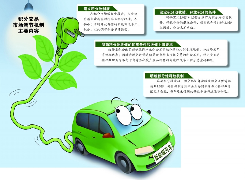 积分考核收紧 汽车产业的“双积分”是指在对汽车厂商实施燃油消耗量积分考核的基础上,自2017年开始增加新能源汽车的积分考核。通俗地讲,企业考核达标产生正积分,不达标产生负积分,有负积分的企业可以通过购买新能源汽车正积分实现合规。 “双积分”管理办法实施后,大幅推动了汽车企业的绿色转型,尤其是促进了新能源汽车产业的发展。数据显示,2021年,我国新能源(600617)乘用车产量达到335.9万辆,同比增长1.7倍,连续7年位居全球第一;行业平均燃料消耗量达到5.10升/100公里(WLTC工况),超额完成5.98升/100公里的燃料消耗量目标;纯电动乘用车平均续驶里程达到392公里,平均电能消耗量达到12.2度/100公里,较2016年分别提升90%、下降23%。 工信部装备工业发展中心主任瞿国春透露,随着节能汽车与新能源汽车大面积推广,目前我国测算全社会交通领域累计减少二氧化碳排放超过1亿吨。 日前,工信部等四部门发布了2021年度汽车工业“双积分”公告。公告显示,2021年度积分交易规模大幅提升,新能源积分交易109.4亿元,同比增长322%。 在平均燃料消耗积分和新能源汽车积分排行榜中,多数自主车企位于前列,是正积分的主要贡献者。比亚迪(002594)、广汽乘用车、江淮汽车(600418)、上汽通用五菱、小鹏汽车等车企均是积分“大户”,而上汽通用、一汽-大众、北京奔驰、长安福特、广汽本田等合资车企的“双积分”均处于负值。 为了进一步引导车企降低排放,实现《新能源汽车产业发展规划(2021~2035年)》的目标,此次修订“双积分”管理办法,特别更新了对新能源汽车积分的计算方法和考核比例。 与此前的管理办法相比,此次《征求意见稿》在新能源汽车单车可获得的积分上进行了如下调整:一是相同续航里程下的标准积分降约40%,积分上限同步下调;二是能量密度调整系数下调,将动力电池能量密度在90~105瓦时/公斤之间的车型和105~125瓦时/公斤之间的车型分值调整系数分别下调至0.7和0.8。 平安证券分析称,以上调整,意味着新能源汽车的积分考核再度收紧,单车积分有所下降。 此外,《征求意见稿》还明确了2024年、2025年新能源汽车积分比例要求分别为28%和38%,较2021年~2023年的14%、16%、18%有较大的提升。平安证券判断,此比例的设置,将促使企业加大电动车的生产比例,更快完成电动化转型。不过,若后续正式稿维持相应政策不变,则低油耗车型的积分计算视同燃油车,可能削弱普混车型的生产积极性。 新增新能源汽车积分池 值得一提的是,《征求意见稿》提出,为保障积分供需基本平衡,稳定企业预期,将新增“积分交易市场调节机制”一章。 具体来说,包括以下四方面:一是建立积分池制度,在积分市场供大于求时,由企业自愿申请新能源汽车正积分收储;在供小于求时释放存储的新能源汽车正积分,以此调节积分市场供需。 二是设定积分池收储、释放积分的条件,将供需比2.0倍和1.5倍分别作为积分池启动收储、释放积分的触发条件,供需比介于1.5和2.0倍之间时,积分池不启动。 三是明确积分池收储的优惠条件和收储上限要求。收储至积分池的新能源汽车正积分不受积分结转比例要求限制,并给予五年有效期优惠;同时为避免过量存储导致市场上可供交易的积分不足,设定企业存储积分比例为不高于自身当年度产生和结转的新能源汽车正积分总量的40%。 四是明确积分池释放机制。启动积分释放后,积分池将自动释放积分至供需比达到1.5倍,并根据积分池中企业存储积分占比将积分分配至各企业,当年度未使用的释放积分将返还积分池。 实际上,随着新能源汽车销量规模的持续攀升,在此前的交易模式下,积分价格的下降已成为必然趋势。欧拉品牌CEO董玉东对证券时报·e公司记者表示,早些年,新能源汽车积分最高可以飙到2500元/分,但目前最新的价格只有500~800元/分,剧烈的价格波动已给企业的经营构成压力。 为此,多位业内人士呼吁建立统一的积分池,以调节供需平衡。例如,比亚迪董事长王传福就曾表示,设立积分池能够增强积分价格的可预见性,进而确保双积分政策有效运行。 哪吒汽车创始人兼董事长方运舟也向证券时报记者表示,设立新能源汽车积分池,可调节市场供需关系,稳定交易价格。 “设立积分池,是行业机构和企业共同呼吁的结果,符合当前产业发展的需求。”崔东树告诉证券时报记者,短期来看,这对稳定积分价格有实质作用,长期来看,可以更好地激发企业发力新能源汽车产业。 据工信部统计,2021年中国境内129家乘用车企业共生产/进口乘用车2065万辆,新能源汽车正积分为679.10万分,新能源汽车负积分为79.79万分,积分市场处于供过于求的状态。平安证券认为,积分池制度有利于用市场化的手段自动调节积分市场供需、稳定积分价格,进而刺激车企在新能源车方面的生产积极性。 拟与碳减排体系衔接 据悉,此次“双积分”管理办法的修订,是面向全社会公开征求意见,相关意见需在今年8月7日前反馈意见。 中国汽车工业协会总工程师、副秘书长叶盛基表示,目前协会正在配合工信部梳理政策实施过程中遇到的问题,为后续相关指标和核算方式的修改完善做好调研,政策的修订会听取多维度的行业意见。 需特别关注的是,在《征求意见稿》中还新增了一项重要内容,即为推进国家“双碳”战略实施,增加企业平均碳排放水平公示要求,有望根据产业发展和碳