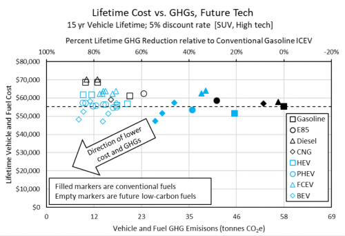 【汽车碳中和】阿贡国家实验室(Argonne)发布了一项新的美国LDV车辆燃料路径的从摇篮到坟墓(C2G)生命周期分析(LCA)。该报告由阿贡研究人员和美国驱动集成系统分析技术团队的成员编写。该分析建立在之前的全面生命周期分析之上,更新了该研究的2016年假设和方法。 USDrive——美国推动车辆效率和能源可持续性的研究和创新——是美国能源部之间的政府-行业合作伙伴关系;USCAR,代表Stellantis、福特汽车公司和通用汽车公司;五家能源公司(BPAmerica、雪佛龙公司、埃克森美孚公司、菲利普斯66公司和壳牌公司);三个公用事业公司(南加州爱迪生公司、密歇根州DTE能源公司、美国电力公司);和电力研究所。 该研究对各种车辆燃料途径的成本和温室气体(GHG)排放进行了全面分析;平准化驾驶成本(LCD);以及避免温室气体排放的成本。C2G分析评估了包括传统内燃机汽车(ICEV)在内的各种车辆燃料技术途径中的轻型中型轿车和小型运动型多功能车(SUV);灵活的混合动力电动汽车(HEV);插电式混合动力电动汽车(PHEV);具有不同续航里程的电池电动汽车(BEV);和燃料电池电动汽车(FCEV)。 2022年报告涵盖了更广泛的车辆技术,并考虑了当前(2020年)和预期的未来(2030-2035年)条件。反映对使用可再生低碳电力和CO2来源生产的合成液体燃料的研究兴趣增加,电子燃料被添加到评估的潜在未来燃料技术中。 选定的燃料途径仅限于那些被认为在未来可在全国范围内推广的途径。没有直接考虑其他问题,例如消费者选择、区域差异以及FCEV和BEV的基础设施可用性。除非明确说明,否则假定产量很高。固定过程中使用的电力组合(除非另有说明)来自美国能源信息署(EIA)在2021年年度能源展望(AEO)中预测的2035年美国电网发电组合。 考虑的燃料生产途径 温室气体排放评估是通过根据行业专家的意见扩展和修改阿贡的GREET模型套件(2020版)来进行的。该C2G温室气体评估包括燃料和车辆生产生命周期。成本评估代表消费者的最终成本/价格,不包括最终产品税(例如,燃料销售税)和/或信贷(例如,车辆补贴)。 车辆燃油经济性和部件尺寸是使用阿贡国家实验室的车辆模拟工具Autonomie估算的,使用了一套一致的车辆燃料组合的车辆性能标准。 报告正文中介绍的主要案例是高动力总成技术进步路径以及每种燃料的核心成本案例。成本分析中提出的范围包括低技术进步车辆加上高燃料成本(如果可用,而中心情况不可用),低范围是具有最低燃料成本的高科技进步(如果可用)。 到目前为止,在2016年研究和当前更新之间的输入假设中最大和最重要的变化是BEV的电池成本。过去5-10年,电动汽车电池的成本大幅下降,而电池成本预测在过去5年也发生了显着变化。在这项分析中,电池成本改善的重要性怎么强调都不为过。 —“美国轻型车辆燃料路径的从摇篮到坟墓的生命周期分析”(2022年) 假设高科技进步,小型SUV的各种车辆燃料路径的C2G温室气体排放。向下箭头显示了低碳燃料和电力ANL对车辆燃料路径的碳足迹的合理减少。 考虑到整车15年的整车寿命,未来大多数技术案例中避免温室气体排放的建模成本低于200美元/吨CO2e,许多选项低于零——即,它们的成本低于ICEV,排放量更少. 此外,BEV400和FCEV路径明显不同于当前的技术案例。这些技术的成本虽然仍然是汽车总成本的主要组成部分,但在此期间经过建模后将显着提高,从而大大降低汽车总成本。 小型SUV的未来技术案例(2020美元)的生命周期成本与车辆燃料路径的温室气体排放量。 对于未来的技术案例,HEV、PHEV和BEV平台提供了最低的避免温室气体排放的建模成本,其中许多选项具有负成本——即成本低于汽油ICEV。除了使用玉米秸秆的E85车辆和使用RNG的CNG车辆之外,FCEV提供的温室气体排放成本低于ICEV技术。 从报告中得出的总体观察结果是,通过低碳燃料途径可以实现LDV的大量温室气体减排,而车辆效率的提高也发挥着重要作用。低碳燃料的成本可能比传统燃料高得多;然而,车辆成本是LCD的主要部分(60-90%),燃料成本是次要的(10-40%)部分。 来源:互联网,汽车碳中和技术翻译编辑 |