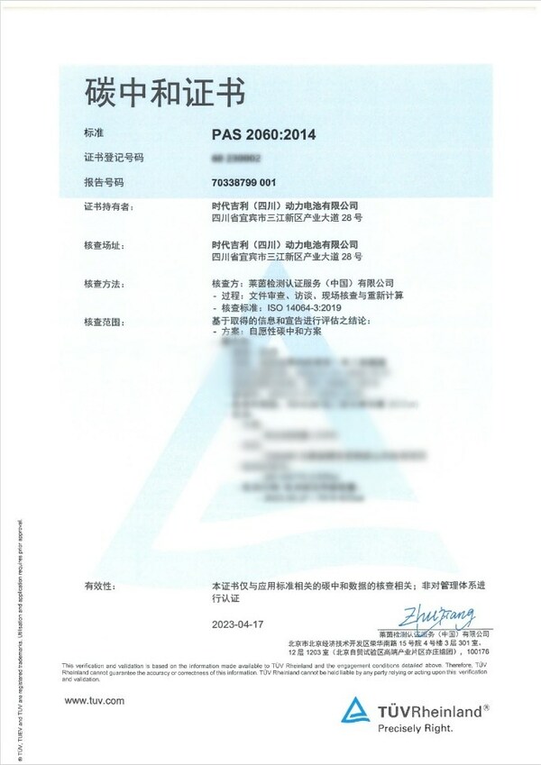 【汽车碳中和】国际独立第三方检测、检验和认证机构德国莱茵TUV大中华区为时代吉利(四川)动力电池有限公司颁发了基于PAS 2060:2014标准的组织碳中和认证证书。 ![]() 时代吉利动力电池生产基地 TUV莱茵按照ISO 14064标准要求,对时代吉利组织层面的温室气体盘查结果进行了再确认;通过现场走访、数据收集和分析等方式,对组织层面温室气体排放的来源进行了核实,并通盘审核评估了其碳减排方案。获颁基于PAS 2060:2014标准的组织碳中和认证证书,说明时代吉利已具备通过节能技改、自主减排、自建光伏、使用绿电和采购CER(Certified Emission Reduction,核证减排量)碳信用抵消等方式实现 "零碳" 的实力,在组织自身运营层面已实现碳中和,在行业内起到了标杆示范作用。 ![]() 时代吉利获颁基于PAS2060:2014标准的组织碳中和认证证书
