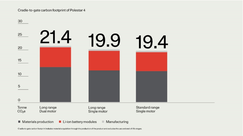 极星4首个LCA生命周期评估报告 极星可持续发展官弗雷德里卡·克拉伦(Fredrika klaren)表示:“为实现极星的净零排放目标,我们为极星所有车型设定了碳预算。在极星4的全产品开发过程中,其碳收支影响覆盖了从原料选择到工厂能源各个方面。我们此次公布极星4的LCA报告,实现了我们可以通过努力实现净零排放目标,即一次减排一吨的二氧化碳当量。” 极星公布旗下所有车型碳足迹的详细数据。 作为一家瑞典电动汽车制造商,极星认为应引领向可持续出行的转变,而更高的透明度对此至关重要。 自2020年对外发布LCA报告以来,极星用简单易理解的数字,呈现汽车生命周期中从产品供应到生产制造,直至回收整个过程产生的碳排放,使得消费者在购买汽车时能够快速做出明智的决定。本文发布的LCA报告公开了极星4从原材料供应到终端全链条的碳足迹数据(不包括使用和废弃阶段)。 |
