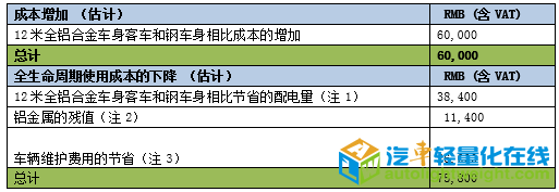 3)成本与轻量化效果的详细分析 整车降重效果明显:基础车白车身重量为4174.23kg;铝车身白车身重量为3773.393kg;实现白车身降重9.6%。 新能源全铝合金客车的全生命周期成本及价值: 4)轻量化方案提供商简介 公司名称: 北汽福田汽车股份有限公司