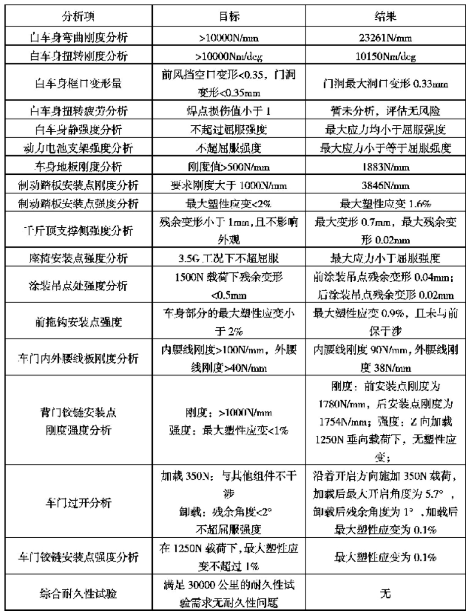 5 结论本文结合从总体到局部、从架构到细节的车身设计思想,对一种新型电动汽车车身结构进行设计,通过CAE仿真优化技术实现车身架构和结构的校核与优化,应用多种材料、多种工艺等实现车身轻量化。车身良好结构和轻量化策略可为后续该型电动车的量产奠定基础。