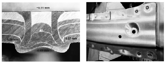 图8 钢铝铆接剖面及铆接后的顶盖横梁