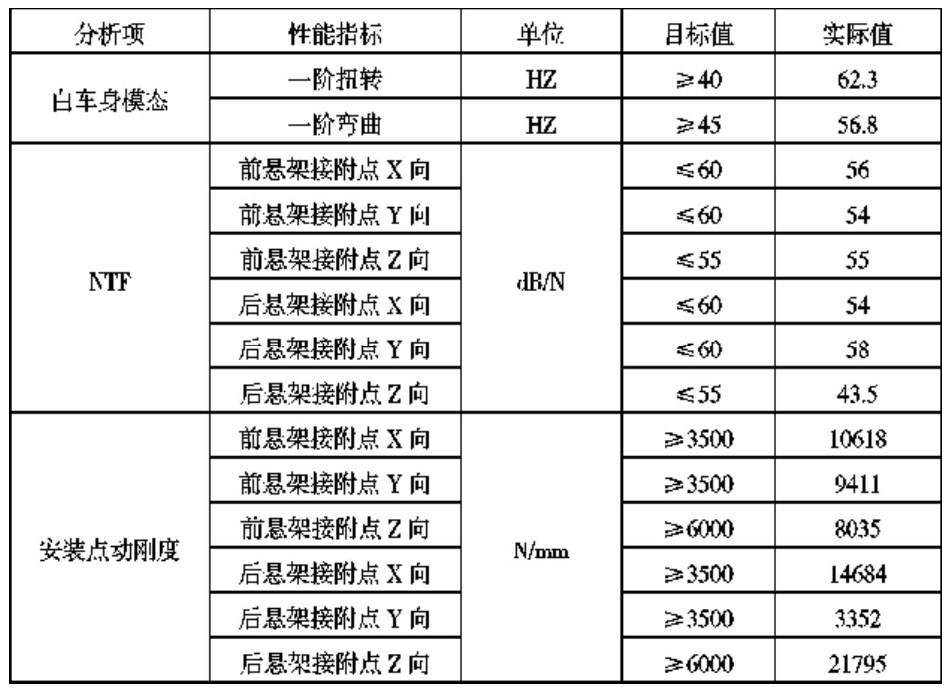 表2 车身NVH