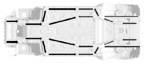 图3 车身主要传力路径仰视图