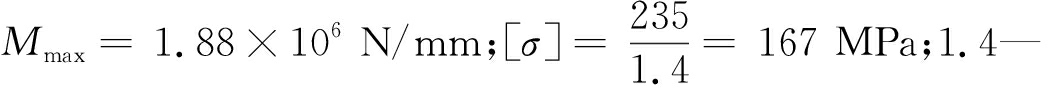 [size=1em](2)车架的最大弯曲应力应小于许用应力的极限值[9],横梁的弯曲应力条件如下: