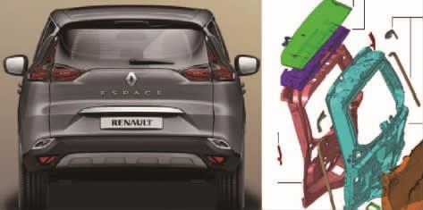 1.2 铝合金的应用[size=1em]铝合金作为轻质金属,是汽车轻量化的理想材料。铝合金在汽车领域的用量在逐步增加,且种类多样化,大有代替钢板、成为未来汽车车身主要材料的趋势。 [size=1em]1.2.1 铝合金的特点 [size=1em]铝合金的主要特点包括:密度小、比强度和比刚度高、弹性和抗冲击性能好、耐腐蚀、耐磨、高导电、高导热、易表面着色、良好的加工成形性及高的回收再生性等。 [size=1em]1.2.2 铝合金的分类 [size=1em]铝合金分为铸造铝合金和变形铝合金,铸造铝合金用于重力铸造件、低压铸件和特种铸造件;变形铝合金主要用于空调系统零件、压缩机件、行驶系部分零件、发动机冷却系统散热器件、车身零件和装饰件等。铝基复合材料用于制造汽车活塞、气缸套、悬臂架、制动卡钳、驱动轴及车轮等汽车零件。 [size=1em]1.2.3 应用于汽车上的铝合金部件 [size=1em]马自达、奥迪等外覆盖件均采用铝合金板材。铝合金在车身上的应用是从发动机罩和行李箱盖开始,逐渐发展到全铝车身。在汽车上的应用材料为铝合金和铝复合材料,目前国外可达80%以上。60%以上的汽车用铝合金材料为再生铝,回收1 t铝合金要比加工制造1 t少耗能95%。汽车工业中加工铝合金所需的工装设备的投资要比钢铁少得多。同时,汽车铝制车身框架以铝挤压型材为主,焊点少,提高了装配效率,也减少了制造成本。 1.3 热塑性塑料的应用[size=1em]热塑性塑料目前主要应用在后尾门,雷诺汽车的后尾门是市场上最大的塑料尾门之一,相比钢制后尾门,减重10%,提高了市场感知度,并且注塑、组装工艺简单,降低了生产成本,如图3所示。  [size=0.8em]图3 热塑性塑料后尾门