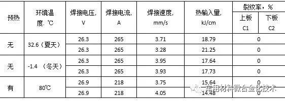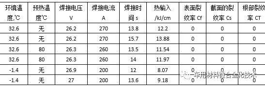 表 3 Y型坡口焊接冷裂纹敏感性试验焊接参数和检验结果