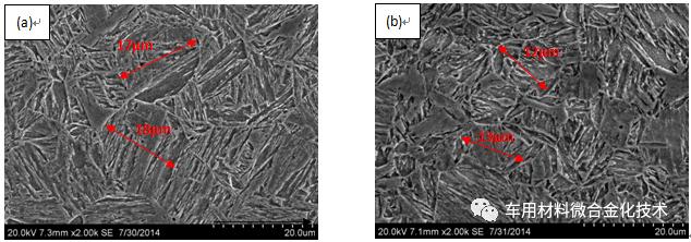 图 5 调质耐磨钢扫描电镜分析结果照片 (a)无Nb 和(b)含有 0.03%Nb