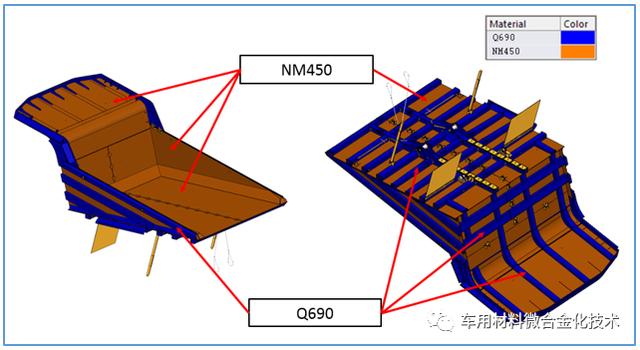 图 3 新矿山自卸车应用Q690和NM450的优化设计